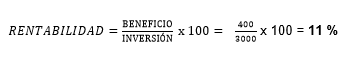 BENEFICIO = Dividendos + venta – inversión = 100 + 3300 – 3000 = 400 €